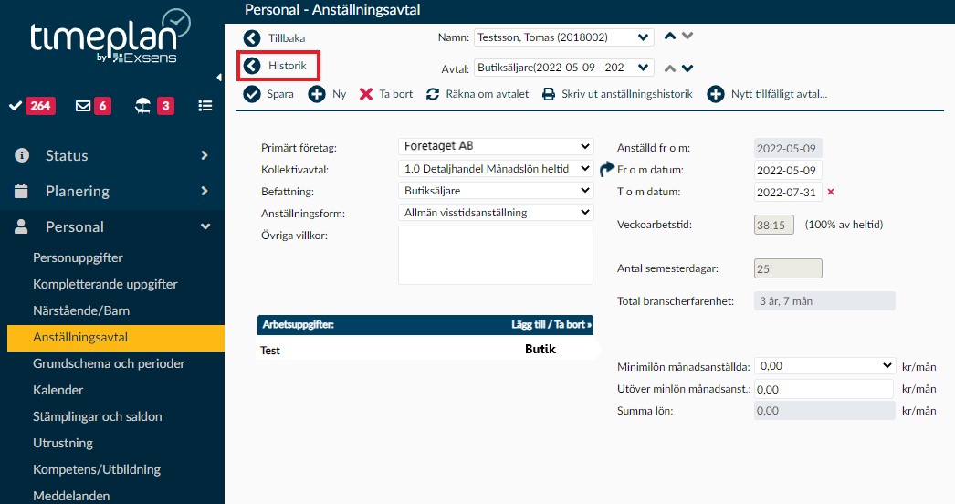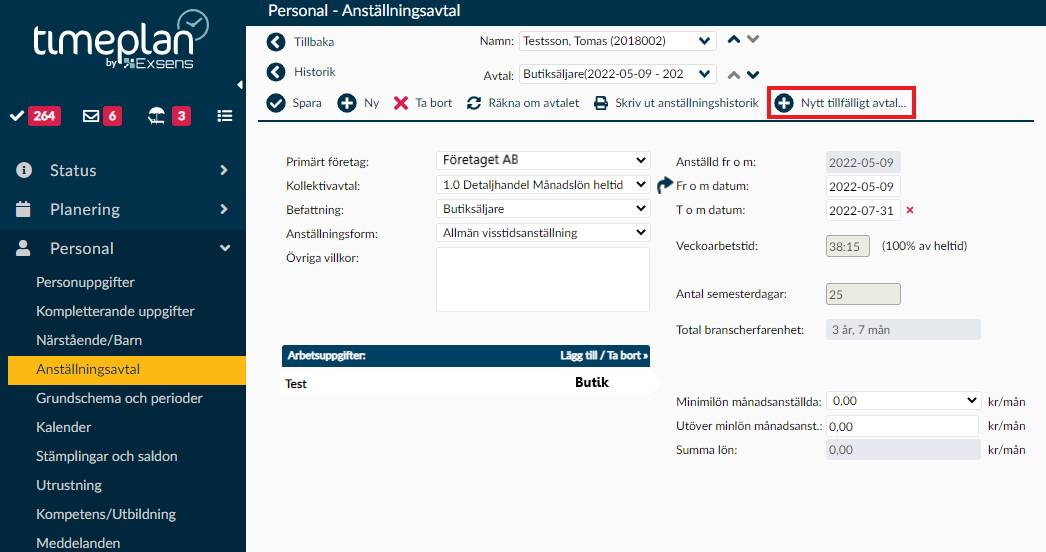 Avtalet läggs automatiskt in i medarbetarens tidslinje. När perioden är slut återgår det ordinarie avtalet utan att du behöver göra något.